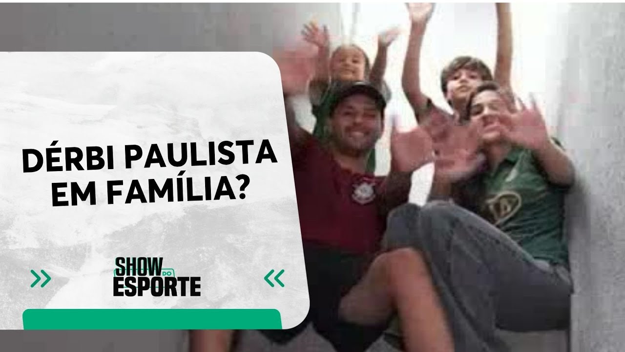 Família apaixonada por futebol, mas dividida entre Corinthians e Palmeiras. Pai e filho do Timão e mãe com a filha do Verdão em pleno domingo de Dérbi