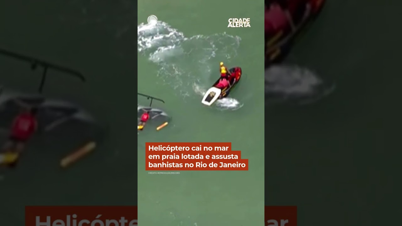 Helicóptero cai no mar em praia lotada e assusta banhistas no Rio de Janeiro #Shorts #CidadeAlerta