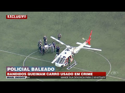 Bandidos fogem após balear PM durante tentativa de assalto e queimar carro usado no crime. Mais informações: band.com.br/brasilurgente